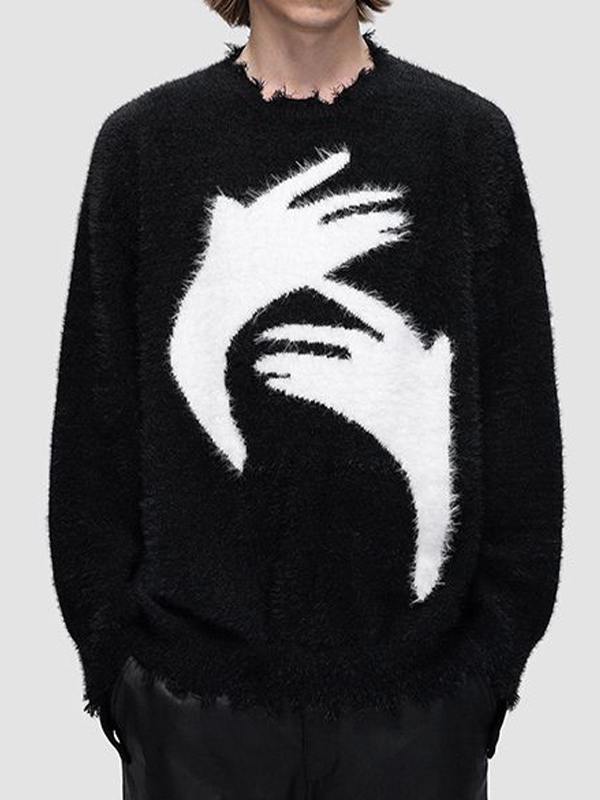 Hip Pop Skeleton Jacquard Pullover Sweater