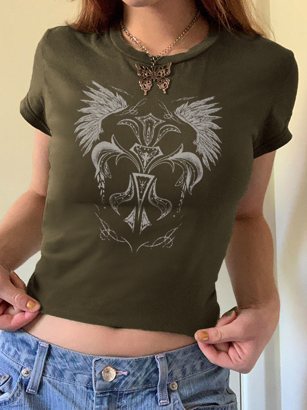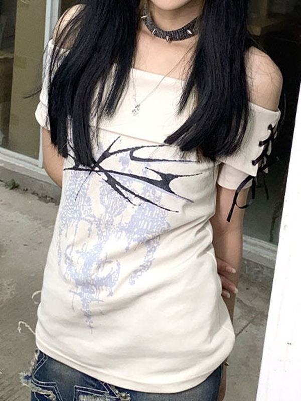 One Shoulder Print Short Sleeve Tee