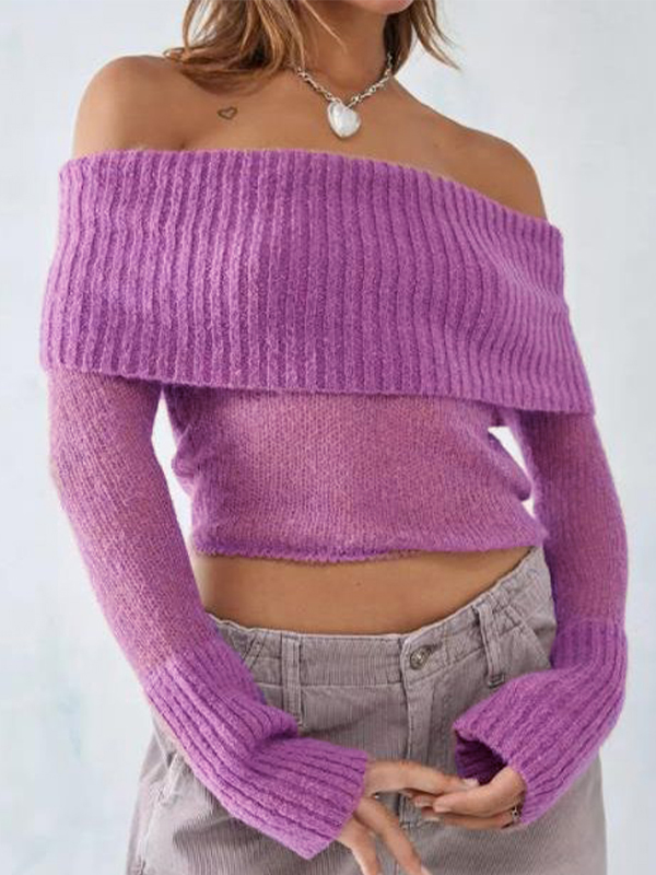 Off Shoulder Splice Thin Long Sleeve Knit