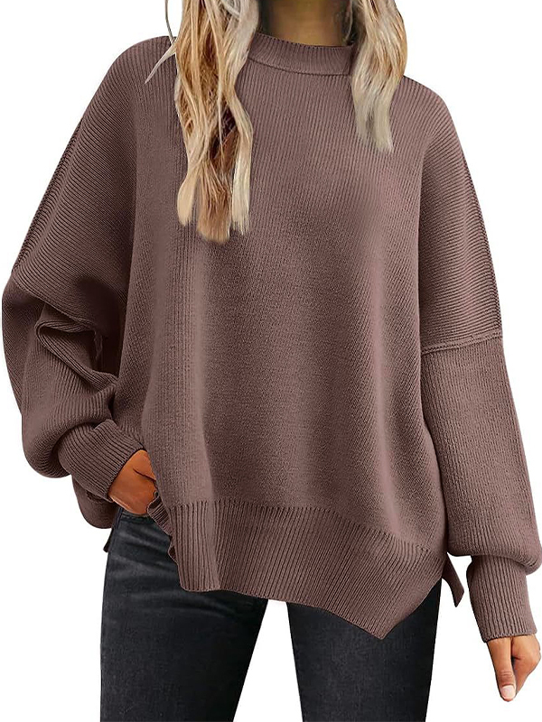 Solid Crew Neck Cape Sleeve Slit Sweater