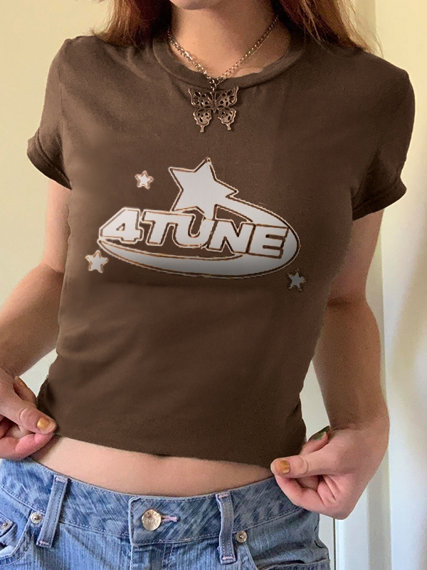 Retro Letter Print Short Sleeve Tee