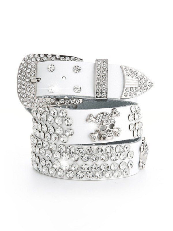 Rhinestone Skull Buckle Belt