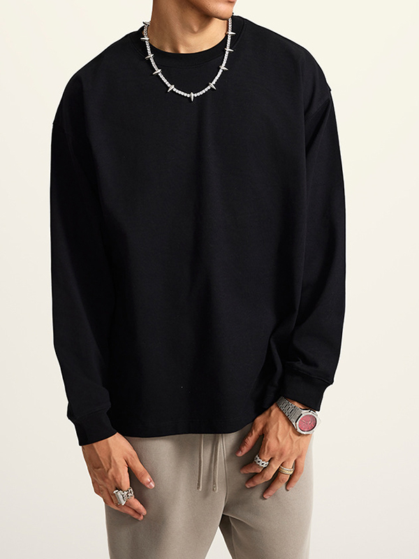 Men’ Solid Color Drop Shoulder Long Sleeve Tee