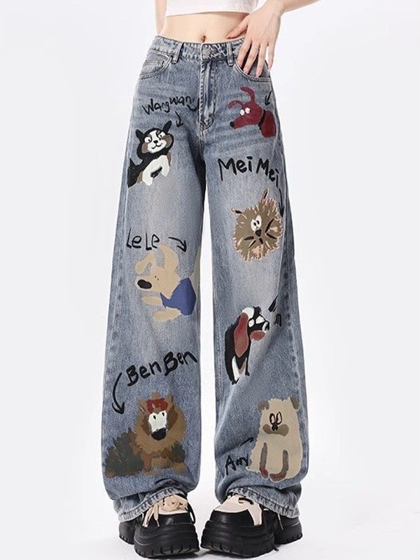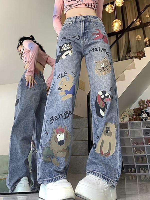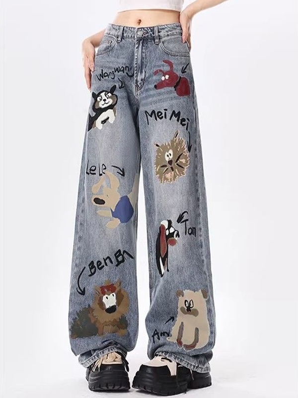 UniqueStyle: These jeans feature a unique animal graffiti print, making them a standout piece in any wardrobe.