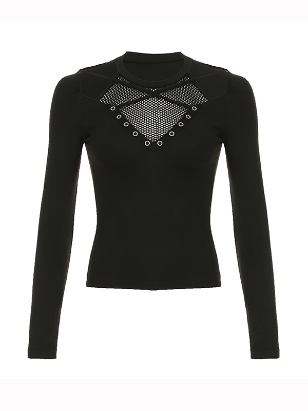 Grid Cross Stitching Long Sleeve Tee