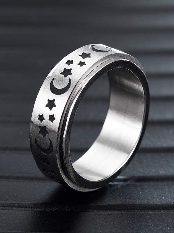 Men’s 1Pc Rotatable Engraved Moon Star Stainless Steel Ring