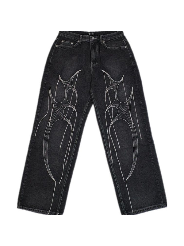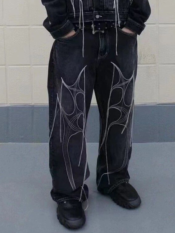 Men’s Fringe Print Loose Jeans