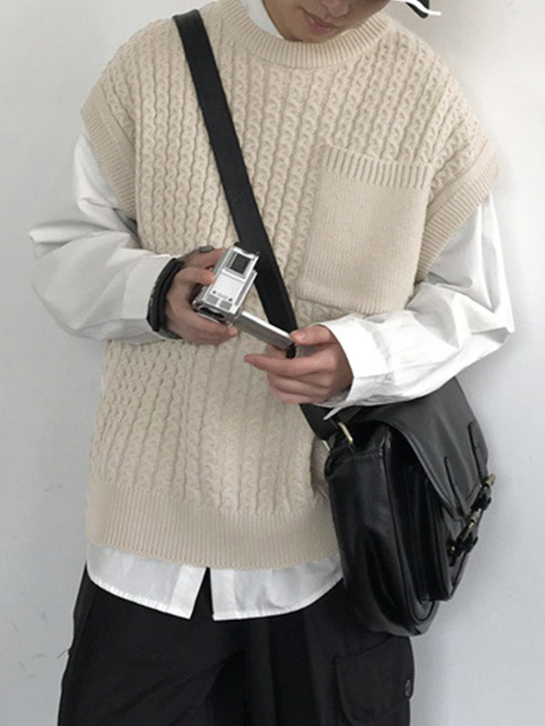 Men’s Pocket Front Cable Knit Sweater Vest