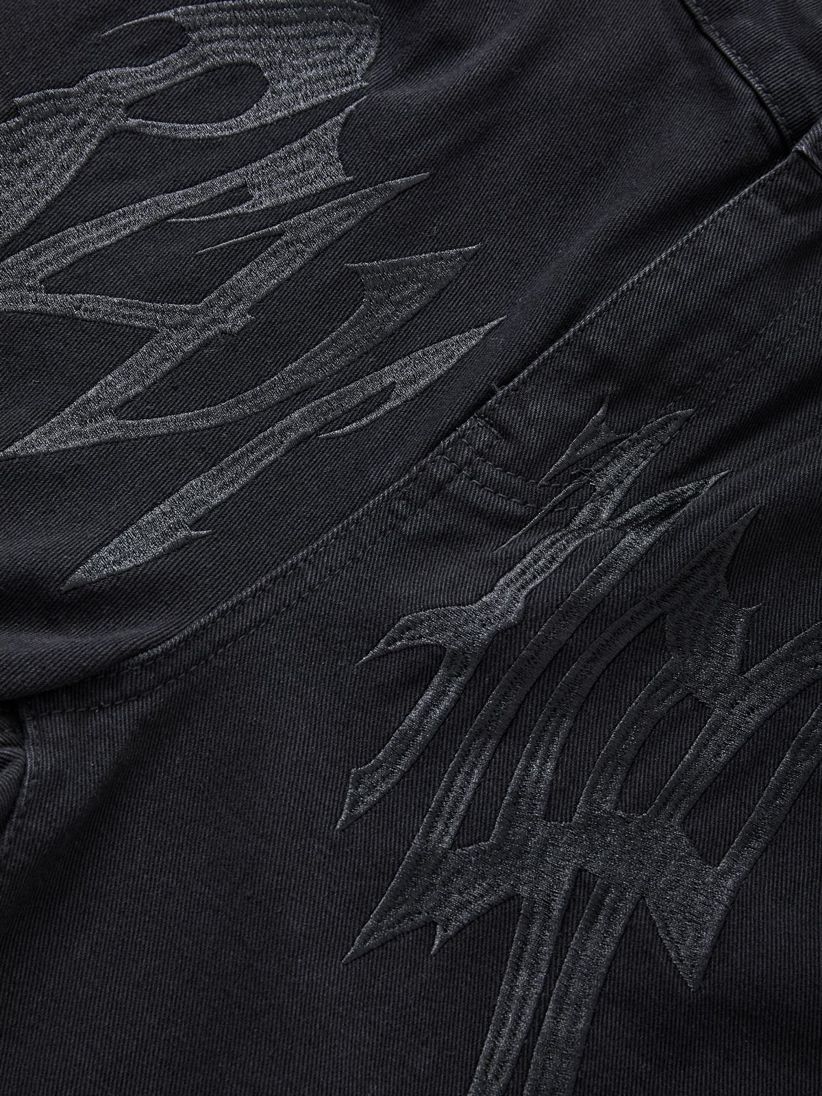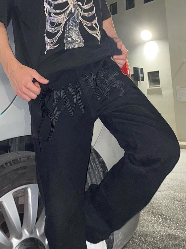 Design: This black washed jeans shaped to a straight-leg fit, with front letter pattern featuring, 5 classic pockets and zip& button fastening.