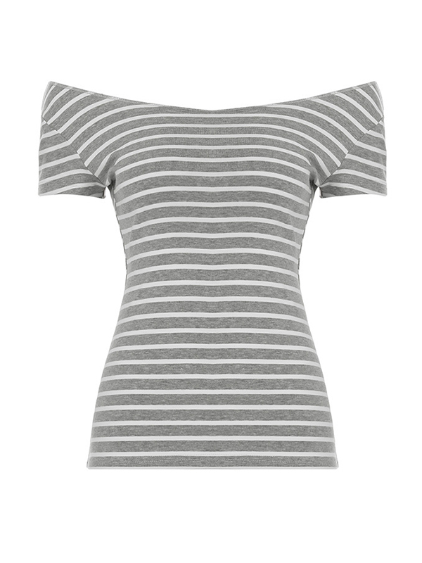 One Shoulder Striped Short Sleeve Tee