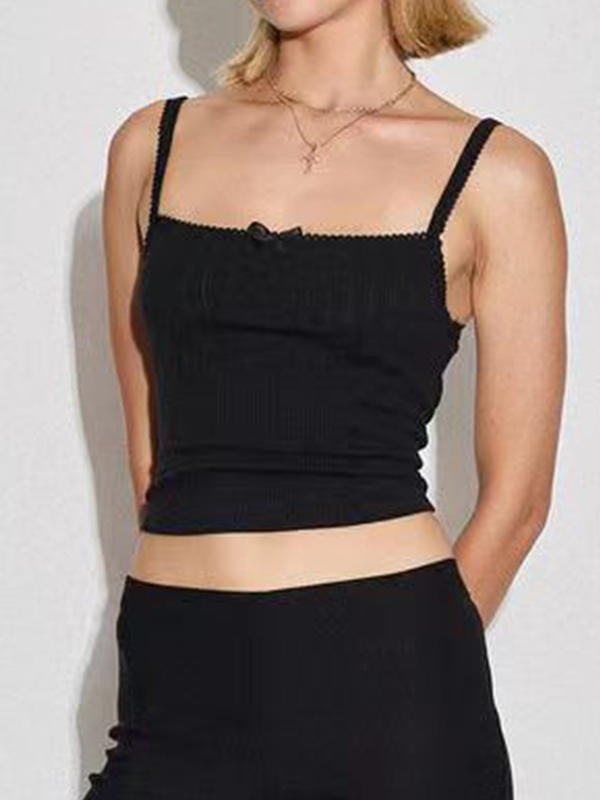 Plain Bow Lace Slim Fit Cami Top