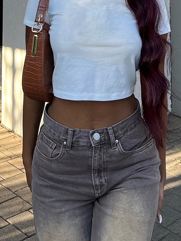 Slim High Waist Washed Boyfriend Jeans