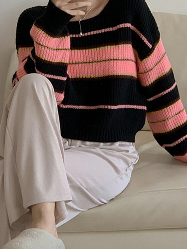 Versatile Design: The stripe splice design of this sweater adds a unique touch that can easily blend with variousStyles, making it a versatile piece for any wardrobe.