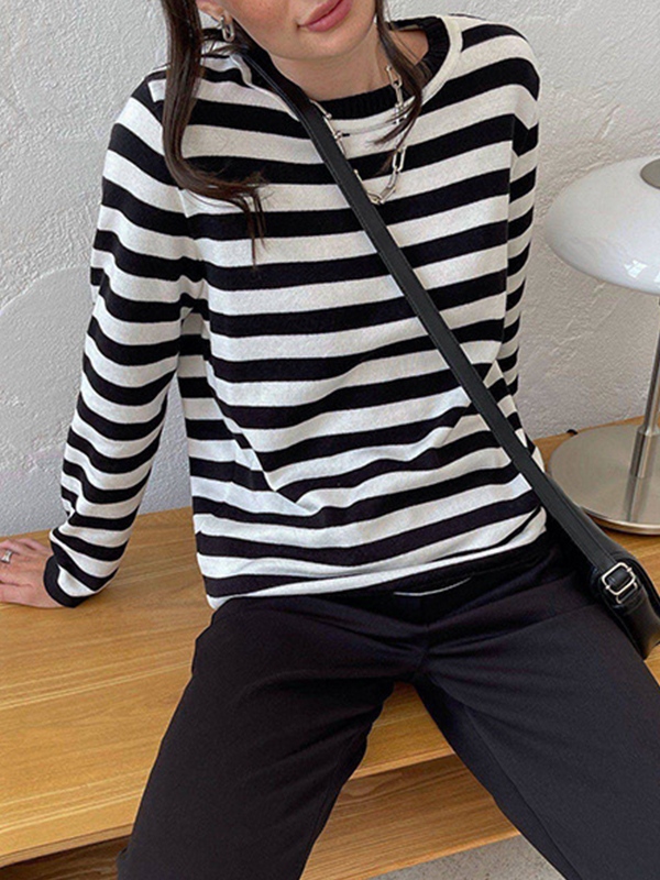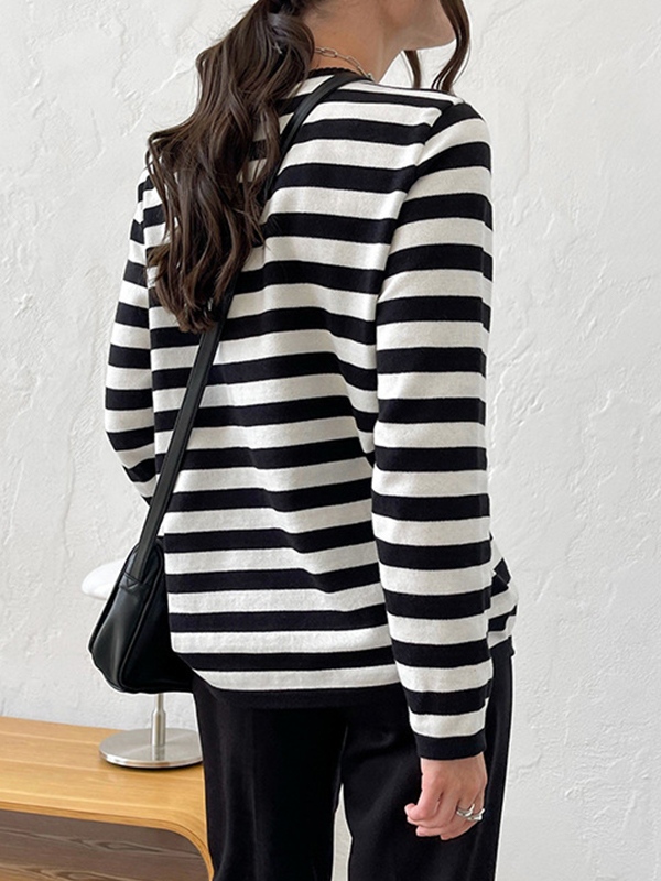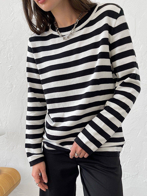 Striped Crew Neck Knit Sweater
