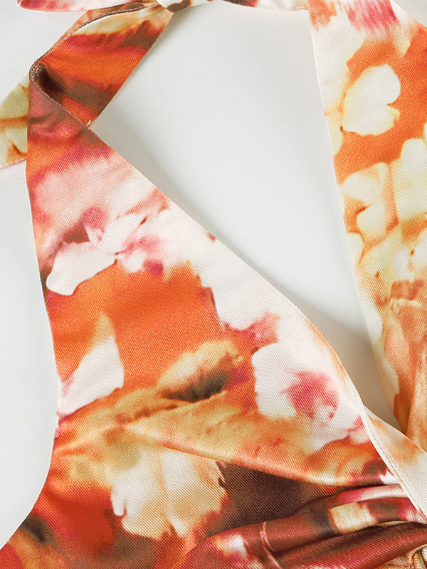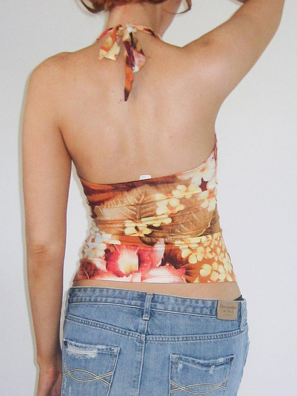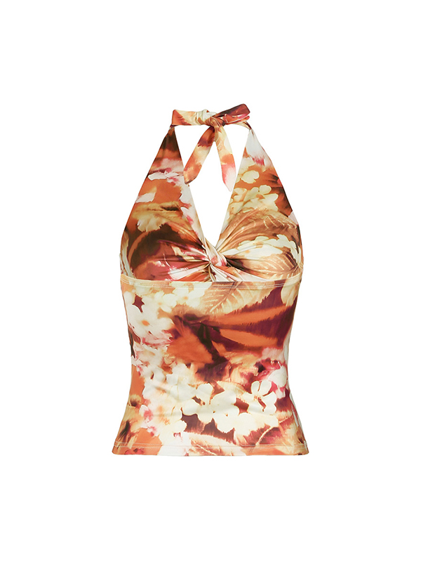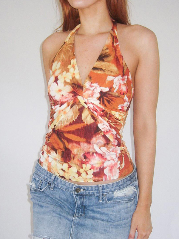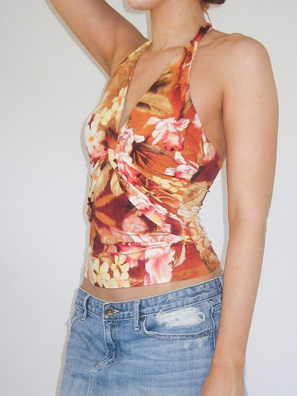 V Neck Backless Floral Slim Halter Vest
