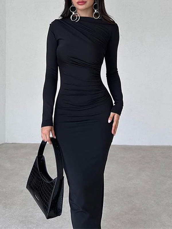 Slim Fit Solid Color Temperament Long Hip-Wrapped Dress