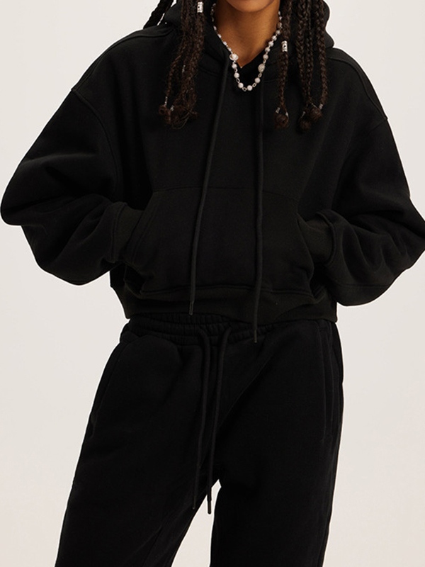 Solid Color Kangaroo Pocket Short Oversized Hoodie