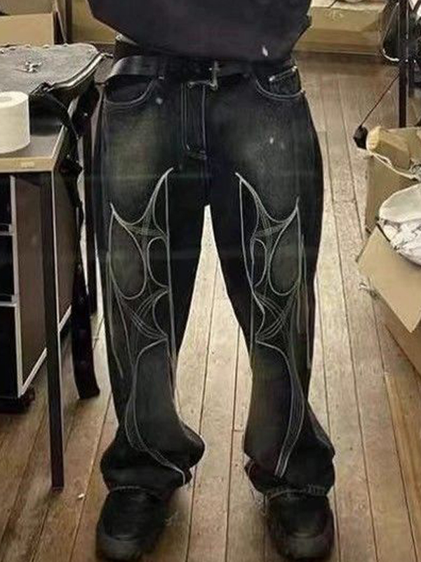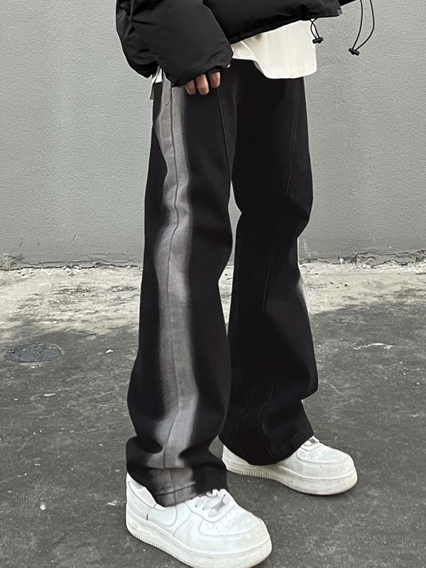 Men’s Vintage Distressed Splice Whisker Wash Loose Jeans