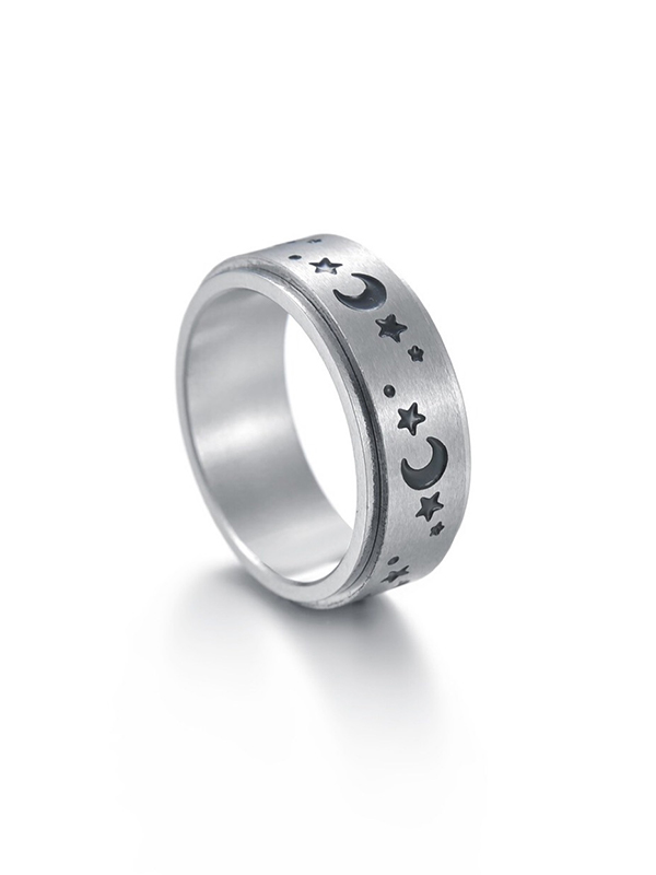 Men’s 1Pc Rotatable Engraved Moon Star Stainless Steel Ring