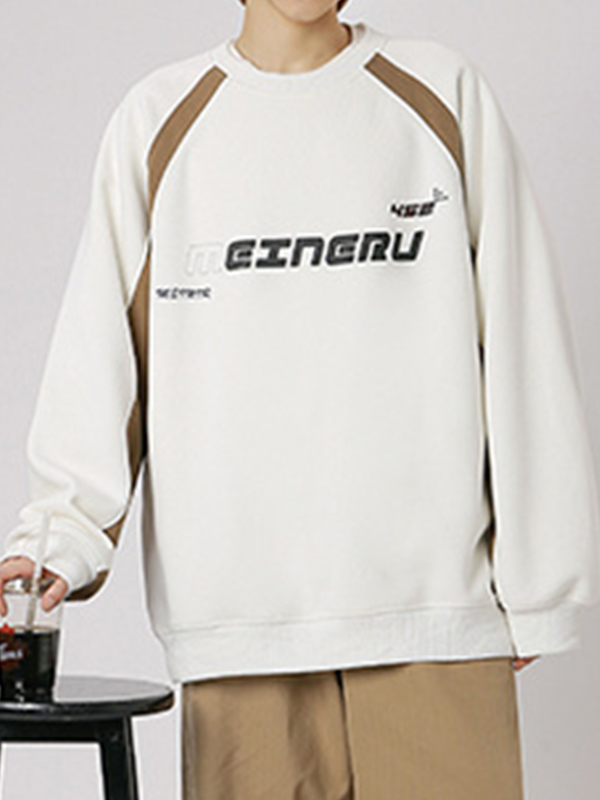 Men’s Vintage Print Patchwork Design Long Sleeve Tee