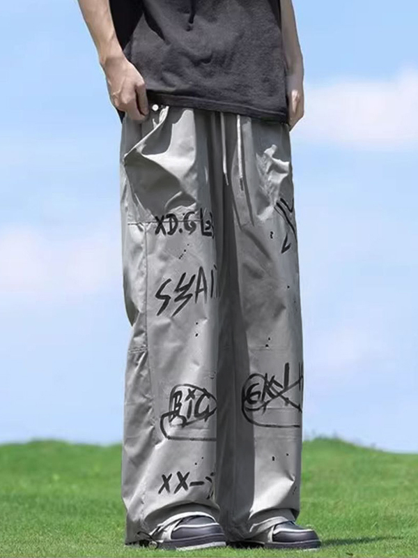 Men’s Hip Pop Graffiti Print Wide Leg Pants