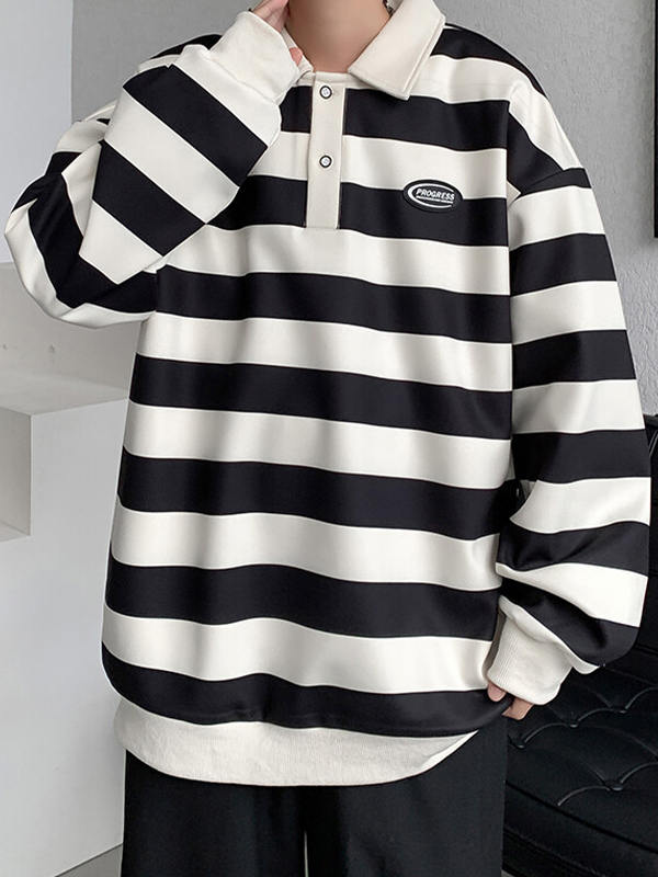 Men’s Vintage Striped Shirt Neck Sweatshirt