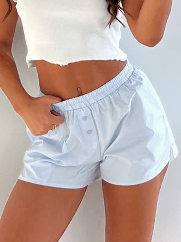Solid Color Button Shorts