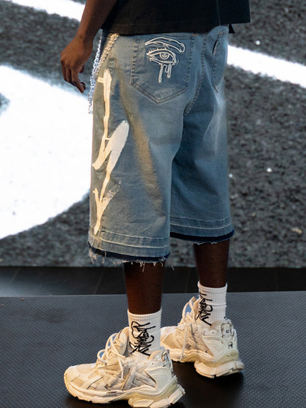 Men’s Letter Embroidery Casual Denim Shorts