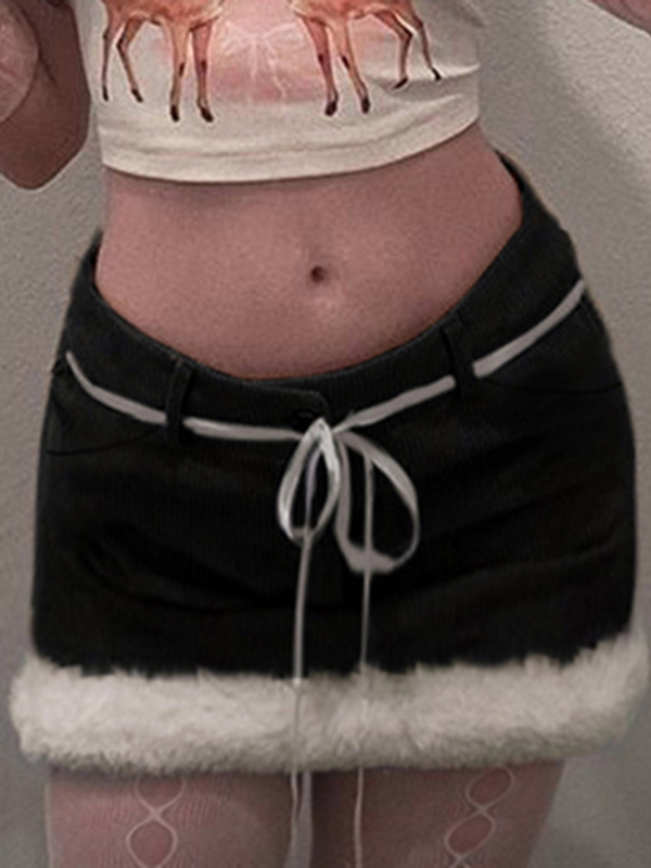 Girly Style Corduroy Hip Bag Mini Skirts