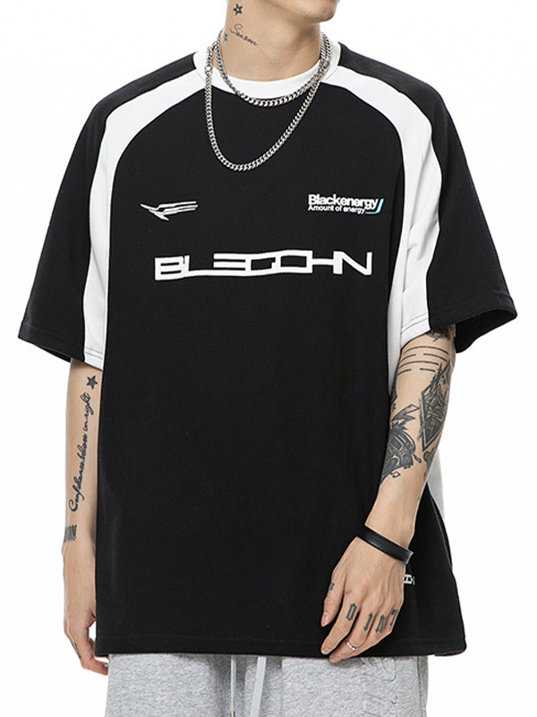 Men’S Racing Print Spliced Oversized Short Sleeve Tee